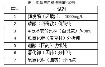 標準工作液(10、20、50、80、100μg/L):分別準確移取0.1mL、0.2mL、0.5mL、0.8mL、1mL揮發酚標準中間液(1000μg/L)于10 mL容量瓶中,用超純水定容至刻度,混勻,配制成 10-100μg/L 的標準系列工作液。