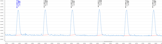 按照《HJ998-2018 土壤和沉積物揮發酚的測定4-氨基安替比林分光光度法》進行試樣的提取,定量重復性(峰面積)測定結果見表2,重復性的分析峰形圖見圖3。