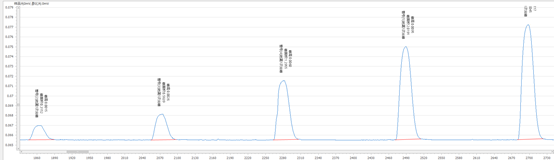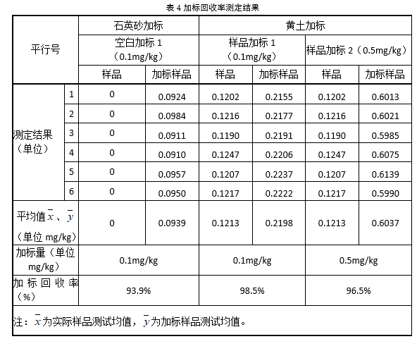按照《HJ998-2018 土壤和沉積物揮發酚的測定4-氨基安替比林分光光度法》對石英砂、石英砂加標、黃土、和黃土加標進行試樣的提取,將樣品提取液連續測定6次,得到加標回收率。加標回收率測定結果見表4,加標回收率的分析峰形圖見圖5-9。