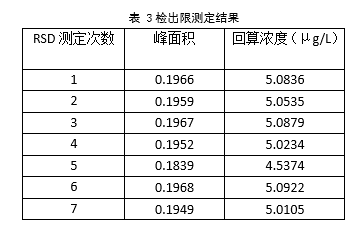將5μg/L揮發酚溶液連續測定7次,,當n=7時t=3.14,檢出限(5μg/L):0.63μg/L,結果詳見表3,分析峰形圖見圖4。