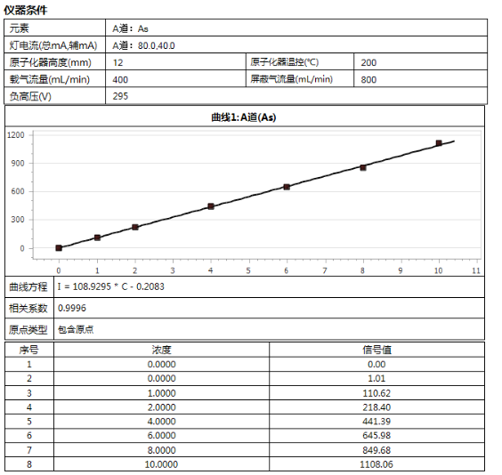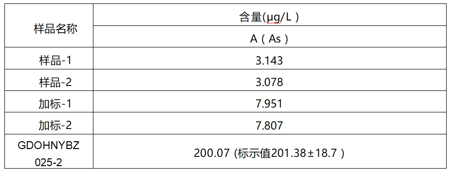 測試結果顯示:應用北京吉天儀器有限公司的 Kylin S12原子熒光光度計可以很好的測定尿液中砷含量 ,線性關系為0.9996  ;重復性RSD為 0.34% ;加標回收率為94.58% ~ 96.16% ,儀器檢出限0.027ng/mL ,質控樣品GDOHNYBZ025-2的砷測定值在真值附近。