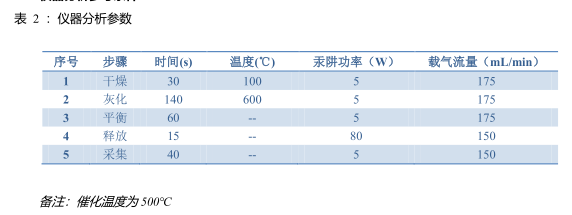 樣品經高溫灼燒及催化熱解后,汞被還原成汞單質,用金汞齊富集,再經過高溫釋放后通過載氣帶入檢測器,在 253.7nm 波長處測量汞的原子吸收信號,外標法定量。