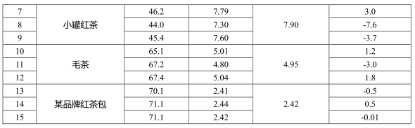 對市售的不同品牌的綠茶、大紅袍、小罐紅茶、毛茶、紅茶包 5 個茶葉樣品進行測試,每個樣品平行測定 3 次,并計算平行樣品的精密度,詳細結果見表 7。