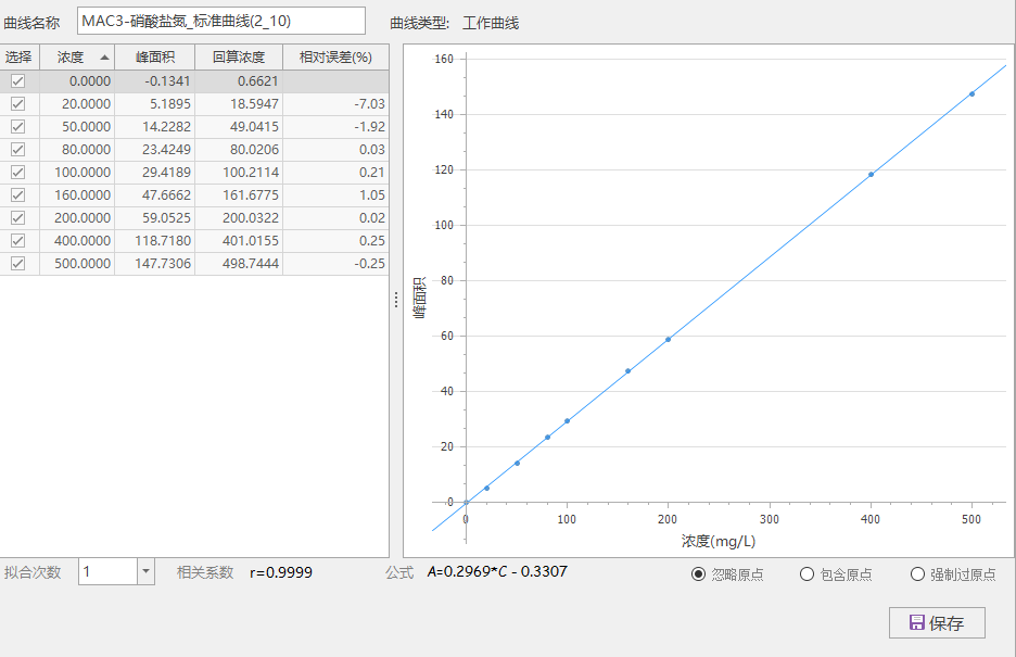 表 2:硝酸鹽標準曲線測定結果