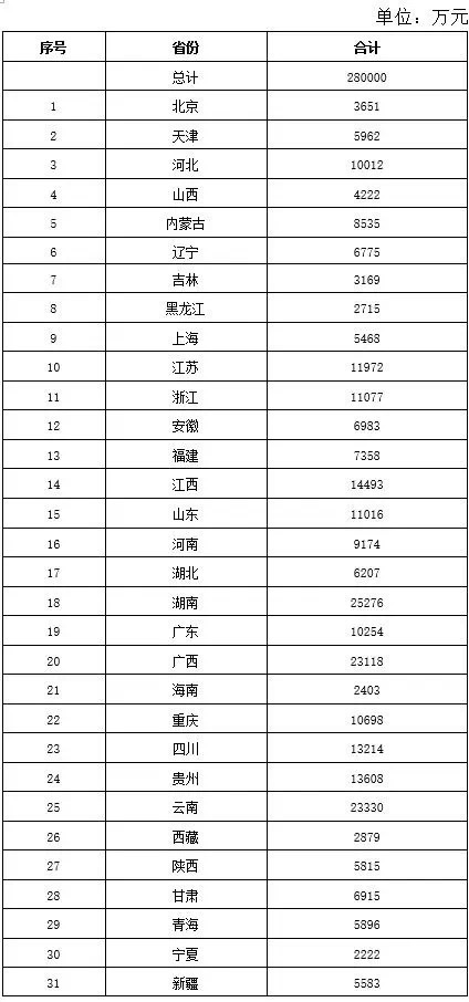 2021年土壤污染防治專項資金提前下達安排表如下: