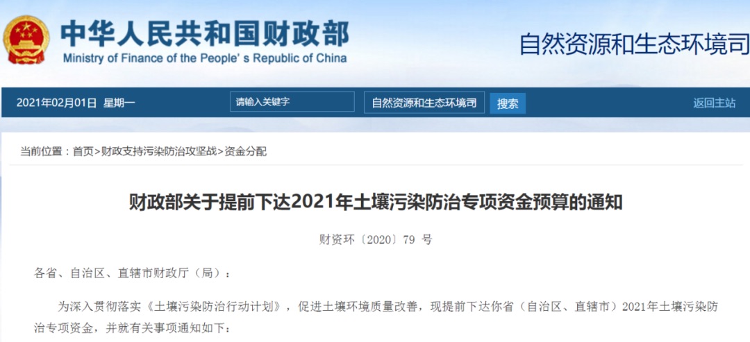 財政部下達的關于2021年土壤污染防治專項資金預算的通知中明確列出各省(自治區、直轄市)的安排金額,全國共計28億元人民幣,要求各省(自治區、直轄市)確定明確的績效目標及時對下分解,做好預算績效管理工作。截至目前,已有浙江、四川、廣東、江西、海南、鄭州等省市陸續下達關于2021年中央土壤污染防治資金的公示。
